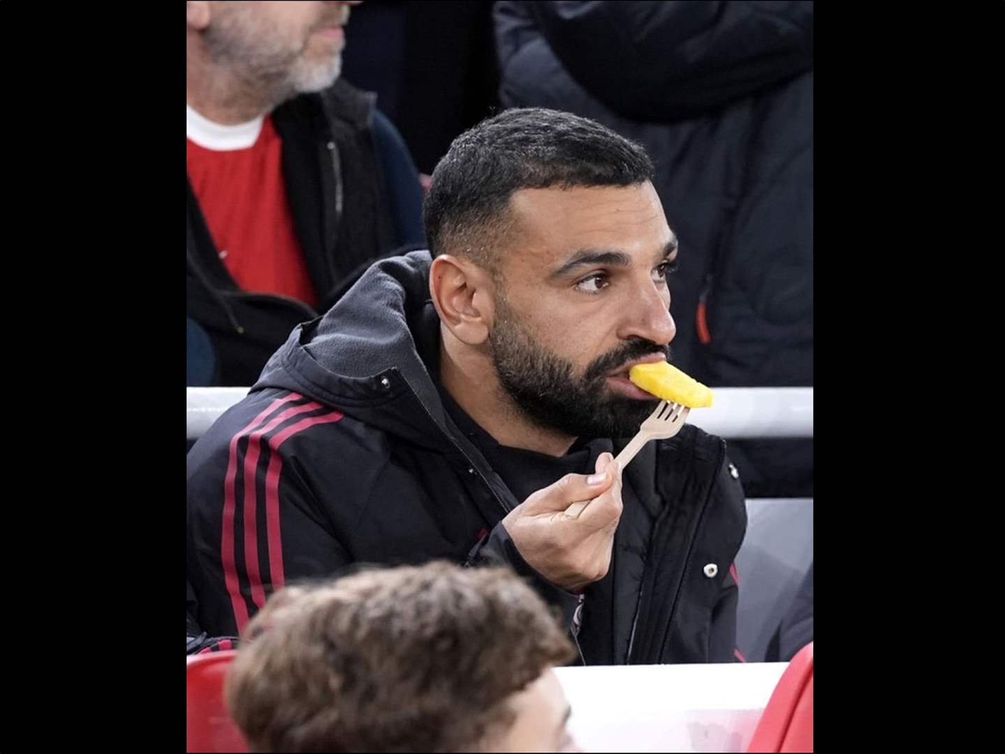 وانتشرت صور لصلاح وهو يجلس مع زميله دومينيك سوبوسلاي، ويتناول فاكهة الأناناس، والتعليقات المتنوعة ومنها “ليفربول يتخلف أمام كريستال بالاس بهدفين وصلاح يستمتع بالأناناس”، و”الأناناس هو بالتأكيد أبرز ما في الليلة”.
