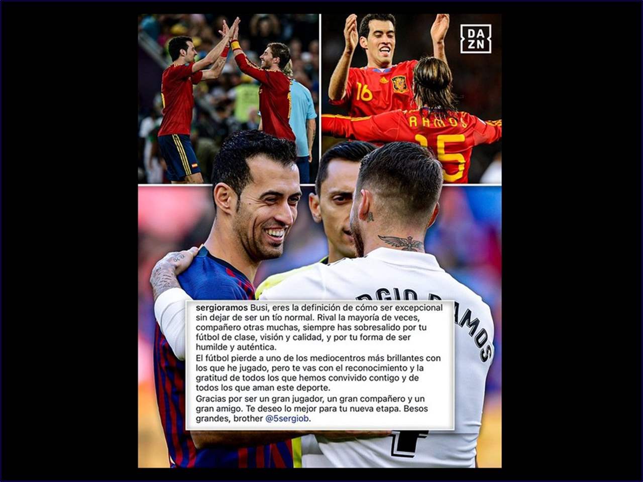 كتب نجم ريال مدريد السابق، اللاعب الدولي الإسباني سيرخيو راموس على منصة (IG)، كلاماً مؤثراً تعليقاً على قرار نجم برشلونة السابق، الدولي سيرجيو بوسكيتس الاعتزال في نهاية الموسم.