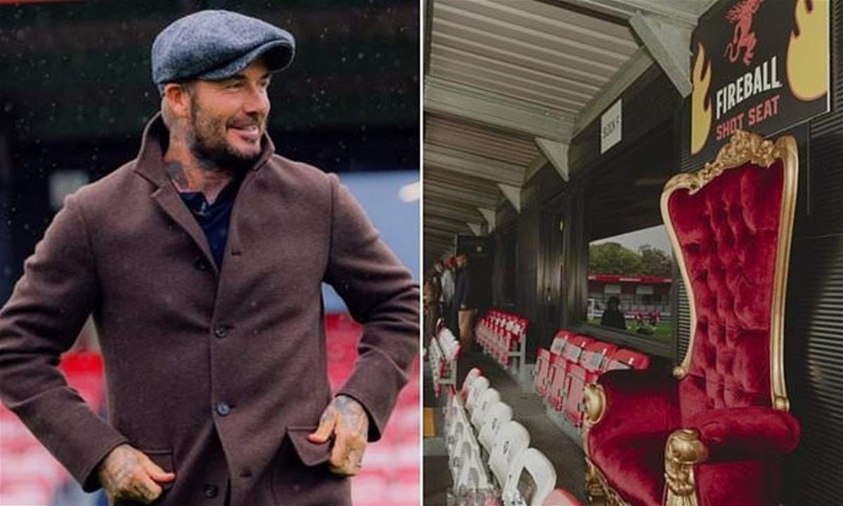شهدت زيارة دافيد بيكهام إلى نادي سالفورد سيتي لفتة خاصة تمثّلت في وضع “عرش” أحمر بطول مترين داخل ملعب النادي، ضمن فعالية ترويجية عُرفت بمقعد “ذا شوت سيت”.