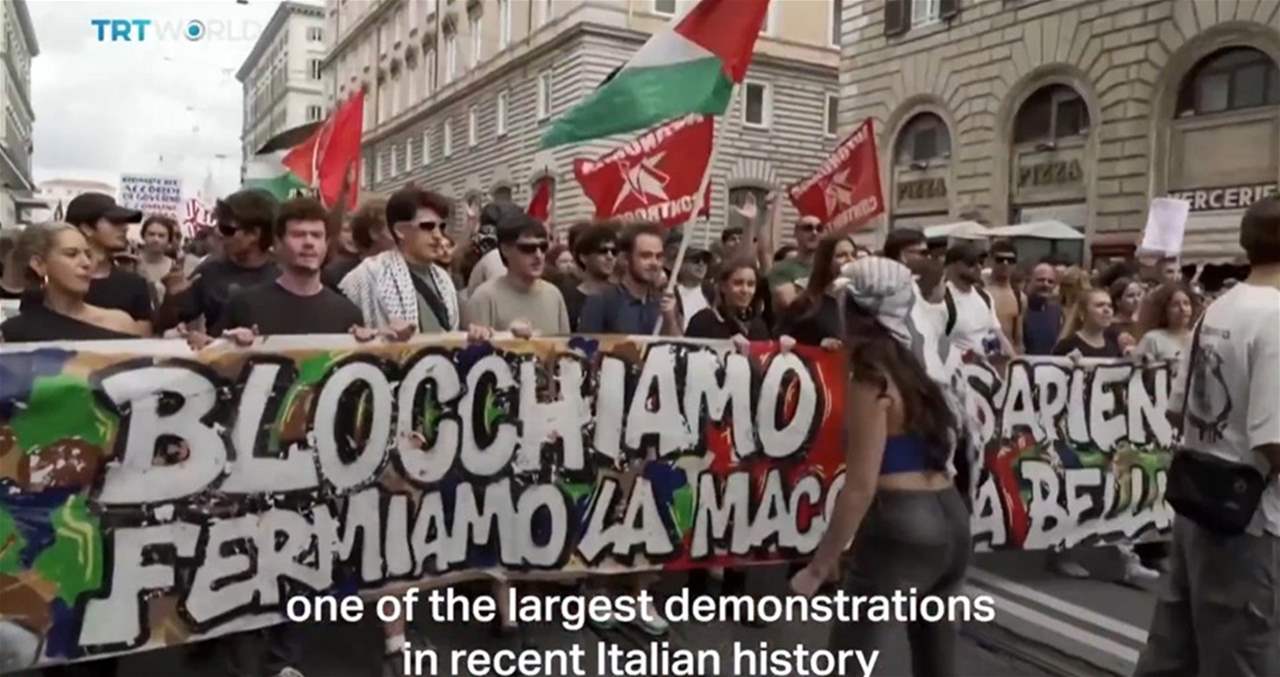 وجاءت الوقفة في سياق إضراب عام شارك فيه نحو مليوني شخص في إيطاليا، وفق أكبر نقابة عمالية في البلاد، حيث رفع المحتجون لافتة كتب عليها “لنوقف الصهيونية بالمقاومة”، وهتفوا عبر مكبرات الصوت “كيف يسمح لإسرائيل، الدولة الصهيونية المجرمة، بأن تواصل لعب المباريات؟”.