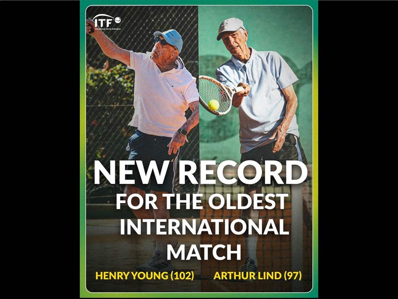 سجّلت رياصة التنس رقما قياسيا فريدا، بعدما خاض الأسترالي هنري يونغ (102 عاما) والأميركي آرثر ليند (97 عاما) مباراةً رسمية ضمن بطولة العالم الفردية، أو “جولة الأساتذة” التي ينظمها الاتحاد الدولي للتنس في كرواتيا.